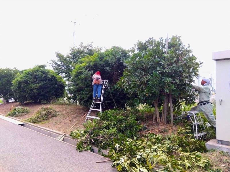 今回は、若松にある工場敷地内にて、草刈りと剪定作業を行いました。